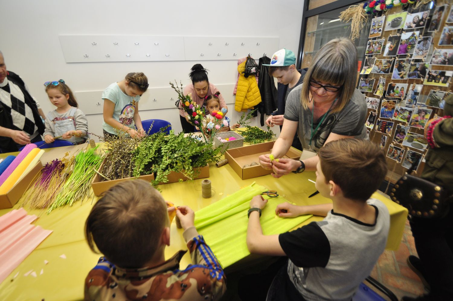 Podczas otwarcia uczestnicy mogli również spróbować swoich sił w rękodzielnictwie – przy pomocy naszych instruktorek powstawały piękne palmy wielkanocne na warsztatach etnograficznych. Odbywały się one w stodole, gdzie również wyświetlany był film o kulturze i historii Jamna.